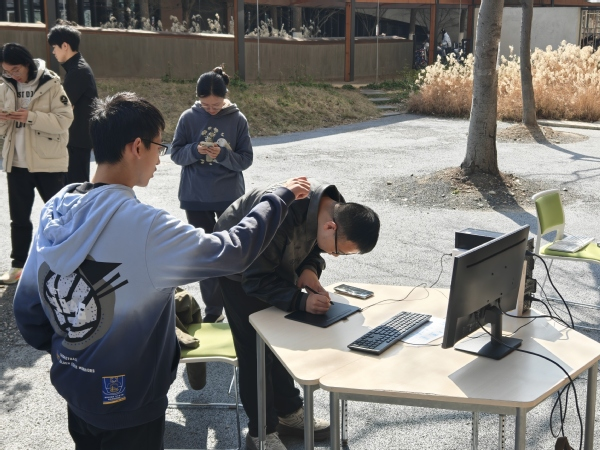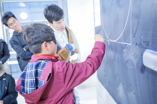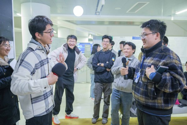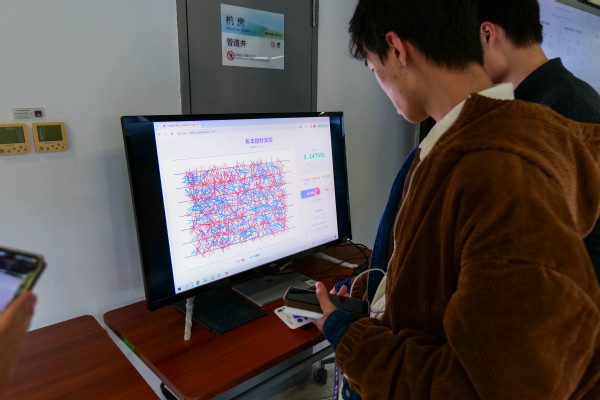 互动区人气更旺。“徒手画圆挑战”前,看挑战者一笔画出“最圆的圆”,系统打分与欢呼声让排行榜频频刷新;而“Vibe Cod‘in Pie”区域则成为全场焦点,AI实时将文字转化为代码,电子乐即刻奏响,师生同刷弹幕,在科技感十足的韵律中共享午后惬意。