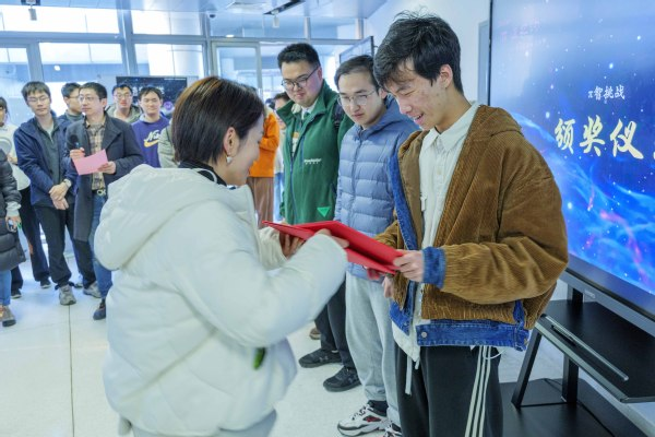 本次π节的重头戏——AI挑战“π球Kissing Number问题”圆满落幕。问题要求在半径为3.14的大球外相切地放置尽可能多的互不相交的单位小球。同学们有效使用AI工具,提交了高质量的解答,部分结果甚至令主办方惊叹于人机协作的创造力。现场颁发了特等奖及一、二、三等奖,获奖者依次登台,在掌声中迎来荣誉时刻,将π节气氛推向高潮。